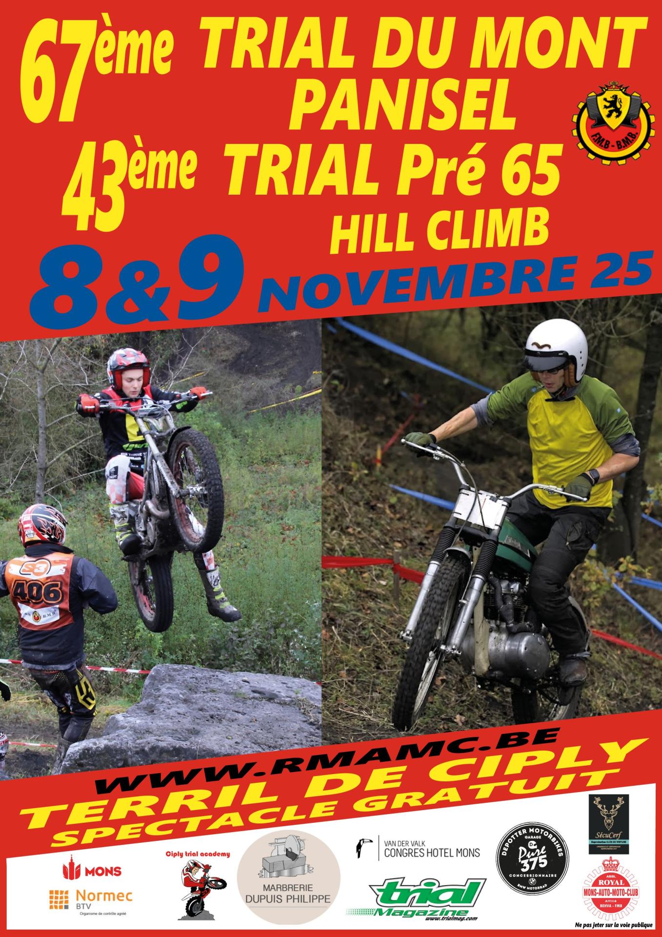 Pre-registration for our pre-65 trial is now closed. If you would like to save time when registering on site, you can download the pre-65 trial registration form, fill it in, print it out and present it at the registration office. We look forward to welcoming you to the 67th International Trial du Mont Panisel on 8 and 9 November.